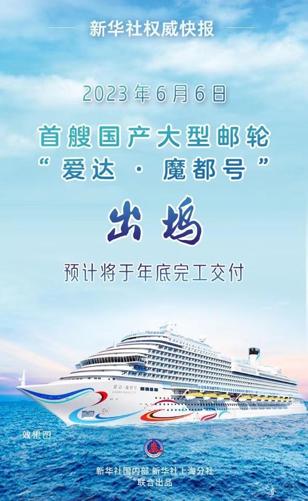 6月6日,由中國船舶外高橋造船有限公司建造的首艘國產(chǎn)大型郵輪“愛達(dá)·魔都號(hào)”出塢,