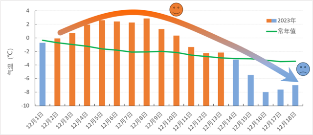 全國經(jīng)歷了前期持續(xù)偏暖、后期急劇降溫的“過山車”式氣溫起伏。12月1-13日全國平均氣溫較常年同期偏高,為歷史同期最高,云南、寧夏氣溫均為歷史同期最高。但從14日開始,受大范圍寒潮天氣影響,全國大部地區(qū)氣溫驟降,部分國家氣象站日最大降溫幅度突破歷史極值。