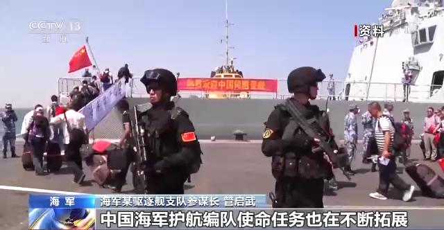 海軍某驅逐艦支隊參謀長 管啟武:護航過程中,中國海軍護航編隊使命任務也在不斷拓展。從最初的為中國船舶護航,發(fā)展到為其他國家船舶護航,從遠洋護航,拓展到多樣化非戰(zhàn)爭軍事行動,充分展現(xiàn)了中國負責任大國的擔當,展現(xiàn)了中國軍隊的綜合實力和良好形象。