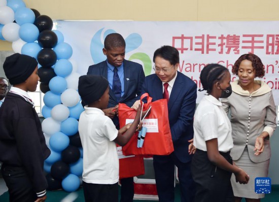 5月26日,在博茨瓦納首都哈博羅內(nèi),茨瓦拉哈諾小學(xué)的學(xué)生收到中國駐博大使館捐贈(zèng)的愛心包。新華社發(fā)(策基索·特巴洛攝)