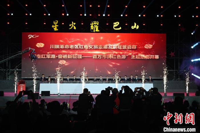 10月23日晚,川陜革命老區(qū)紅色文旅走廊發(fā)展聯(lián)盟在重慶城口成立。張旭 攝