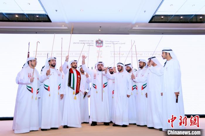圖為阿聯(lián)酋國慶慶祝活動(dòng)中的傳統(tǒng)舞蹈表演。 (阿聯(lián)酋駐華使館供圖)