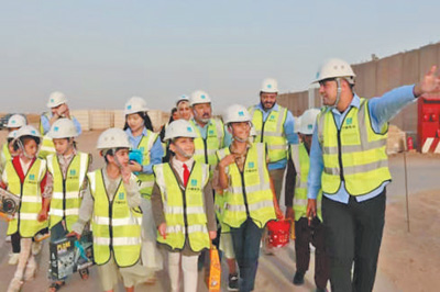 “小小工程師”在參觀機(jī)場(chǎng)項(xiàng)目。