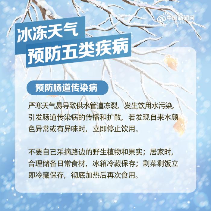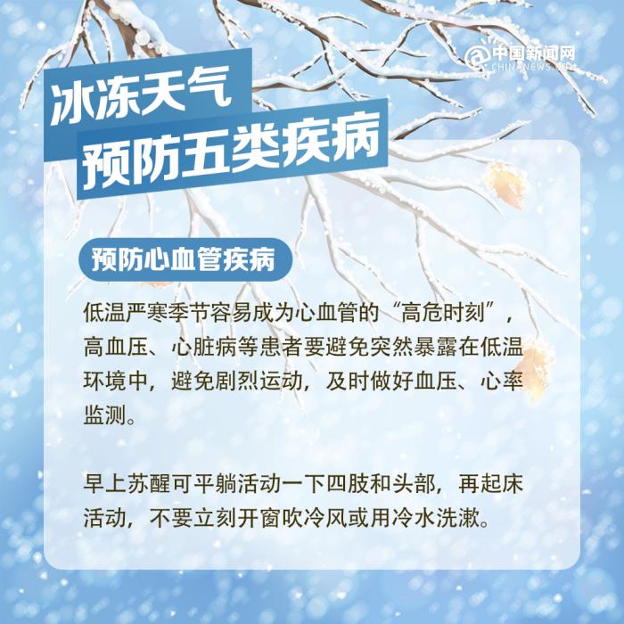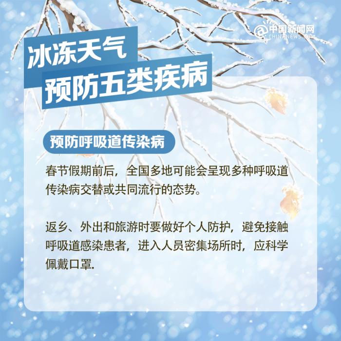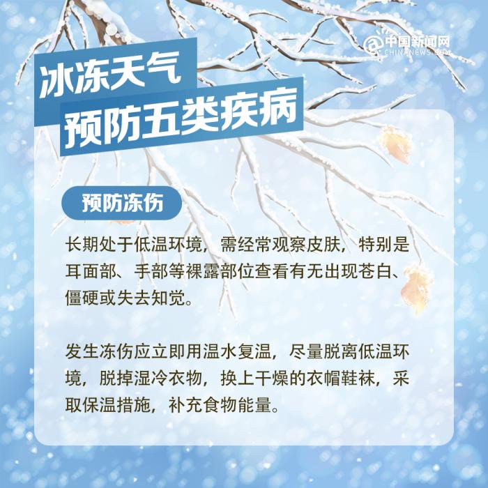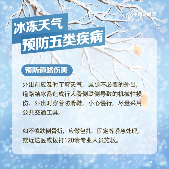 中新網(wǎng)北京2月7日電 近期我國中東部地區(qū)出現(xiàn)大范圍持續(xù)性低溫雨雪冰凍天氣過程,局部地區(qū)累計(jì)降雪量將接近或超過歷史同期,雨雪覆蓋范圍廣、持續(xù)時間長、凍雨范圍大,雨雪冰凍災(zāi)害風(fēng)險高,恰逢春節(jié)人員大規(guī)模流動,以下健康防護(hù)要點(diǎn)請查收。