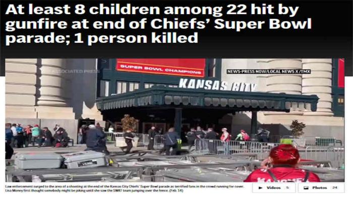 中新網(wǎng)2月15日電 綜合美聯(lián)社、美國廣播公司(ABC)報道,當(dāng)?shù)貢r間14日,美國密蘇里州堪薩斯城警方表示,該市當(dāng)日舉行美國職業(yè)橄欖球大聯(lián)盟“超級碗”勝利游行時發(fā)生槍擊事件,導(dǎo)致1人死亡,至少21人受傷,其中包括多名兒童。