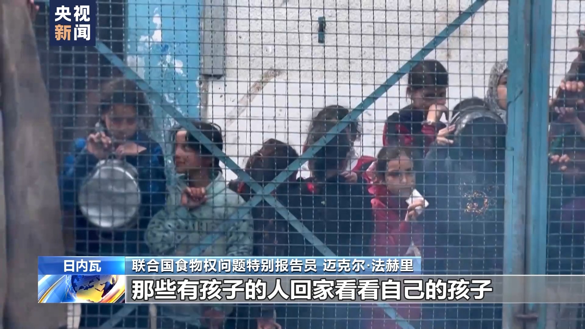 聯(lián)合國(guó)食物權(quán)問(wèn)題特別報(bào)告員 邁克爾·法赫里:人道主義援助行動(dòng)還要多慢?還要死多少人?還需要多少統(tǒng)計(jì)數(shù)據(jù)?還要多少故事和多少?gòu)堈掌磕切┯泻⒆拥娜嘶丶铱纯醋约旱暮⒆?,想想加沙地帶正在發(fā)生什么。(來(lái)源:央視新聞客戶端)