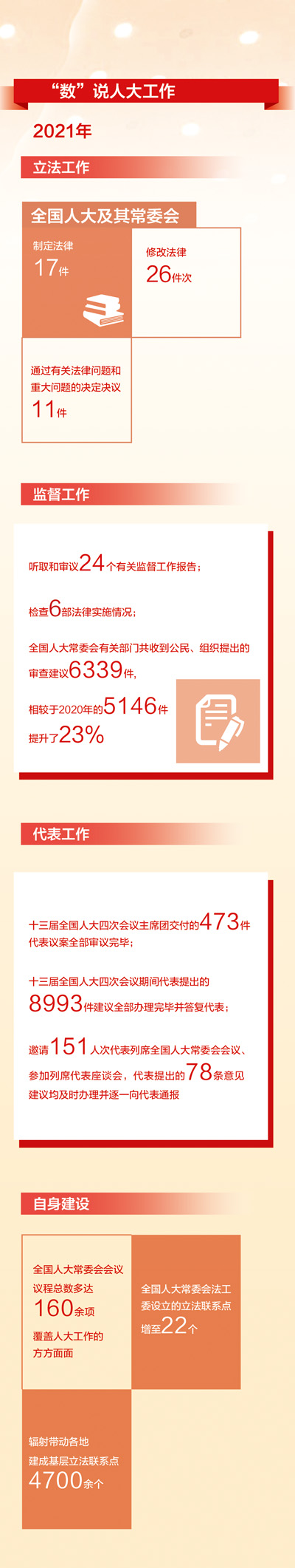 過去一年,一組組亮眼數(shù)據(jù)折射出我國立法工作取得的沉甸甸成績,體現(xiàn)立法工作堅(jiān)持黨的領(lǐng)導(dǎo)、體現(xiàn)人民意志、回應(yīng)社會(huì)關(guān)切,堅(jiān)持科學(xué)立法、民主立法、依法立法,充分發(fā)揮法治固根本穩(wěn)預(yù)期利長遠(yuǎn)的保障作用。
