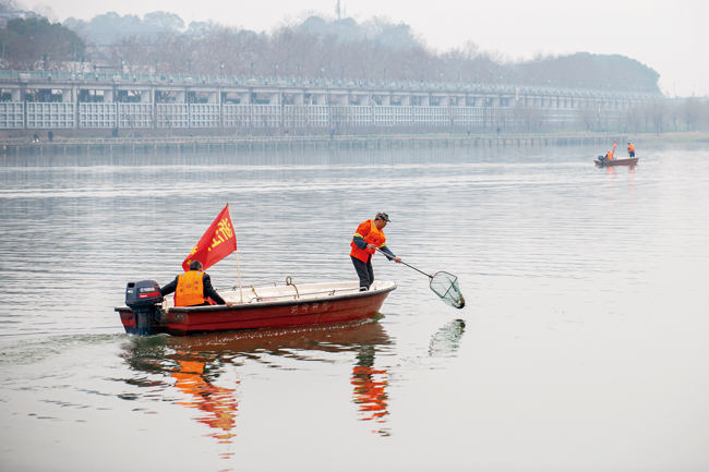 3月22日,金華蘭溪市蘭江江面上,護水人員駕駛打撈船巡河,及時清理漂浮物。當天是第三十屆“世界水日”。近年來,蘭溪市護水人員每天在水面上巡邏,發(fā)現(xiàn)垃圾和漂浮物及時清理,確保江水干凈。(胡肖飛)