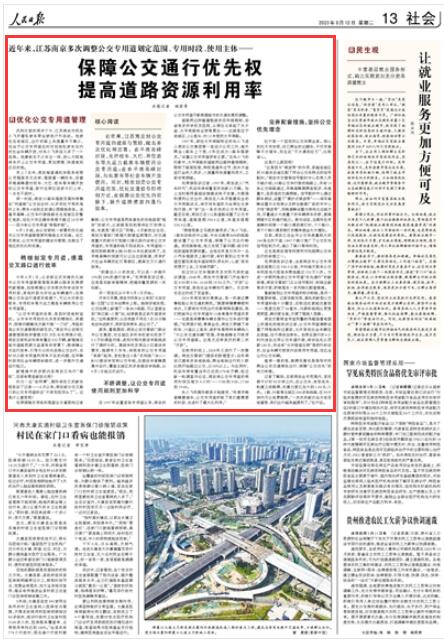 人民日報|江蘇南京:保障公交通行優(yōu)先權 提高道路資源利用率