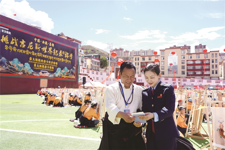 商報(bào)訊(通訊員 德西卓瑪 記者 芮怡星)當(dāng)1138名畫師在西藏昌都市卡若區(qū)共同創(chuàng)造“最大規(guī)模唐卡課程”和“最大規(guī)模的唐卡同步繪制”兩項(xiàng)吉尼斯世界紀(jì)錄時,一抹“稅務(wù)藍(lán)”也悄然融入這片藝術(shù)的海洋。國家稅務(wù)總局昌都市稅務(wù)局“卓卓稅宣小分隊(duì)”穿梭其間,將精準(zhǔn)的稅惠政策送至活動現(xiàn)場,為這場文化盛事增添了一抹特別的“稅務(wù)藍(lán)”。