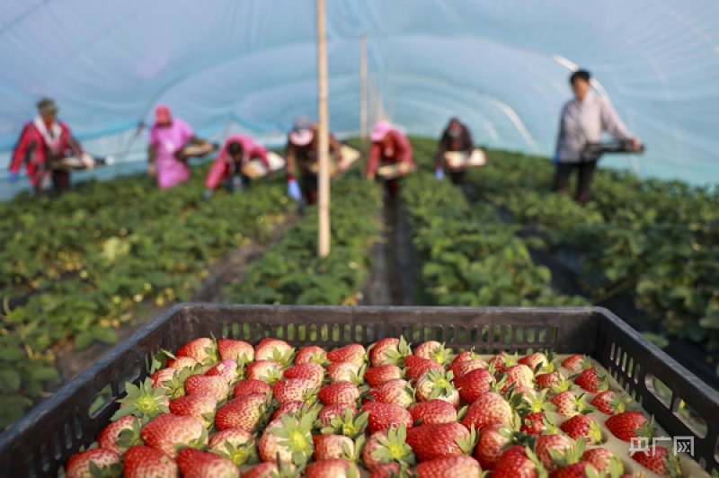 連日來,泰州市姜堰區(qū)蔣垛鎮(zhèn)鹽大村草莓種植基地的一千多畝優(yōu)質(zhì)草莓陸續(xù)上市,當(dāng)?shù)胤N植大戶正組織農(nóng)業(yè)產(chǎn)業(yè)工人抓緊時(shí)間采摘,以供應(yīng)市場(chǎng)。