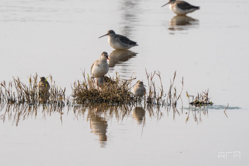 央廣網(wǎng)新余1月11日消息(記者鄧玉玲)2023年1月10日,江西省新余市渝水區(qū)水北鎮(zhèn)黃坑村水域,大量反嘴鷸、黑翅長(zhǎng)腳鷸、野鴨等候鳥或在空中盤旋飛舞,或在水中嬉戲覓食,構(gòu)成冬季美麗的生態(tài)畫卷。