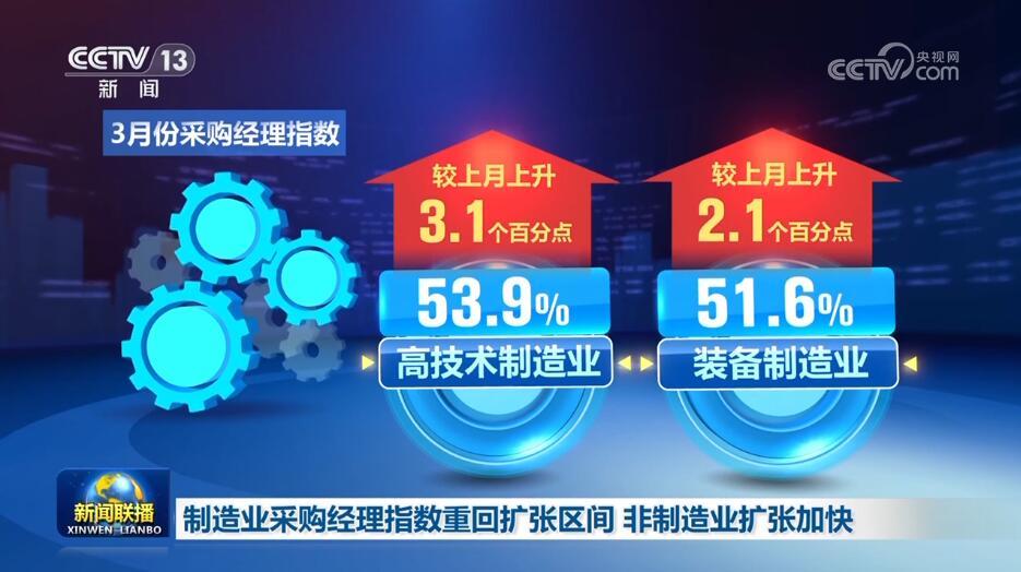 中國(guó)物流與采購(gòu)聯(lián)合會(huì)、國(guó)家統(tǒng)計(jì)局服務(wù)業(yè)調(diào)查中心3月31日公布3月份中國(guó)采購(gòu)經(jīng)理指數(shù)。制造業(yè)采購(gòu)經(jīng)理指數(shù)重回?cái)U(kuò)張區(qū)間,景氣水平明顯提升,非制造業(yè)繼續(xù)加快擴(kuò)張。