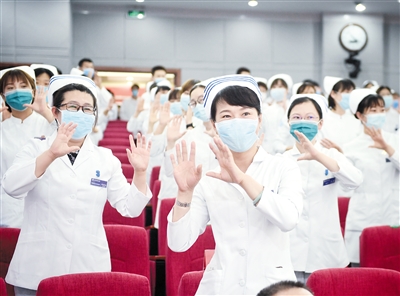 5月11日,北京大學第三醫(yī)院舉辦紀念南丁格爾誕辰200周年暨歡迎援鄂護士返崗活動?;顒又校瑢?yōu)質(zhì)護理服務先進集體、十佳護士等進行了表彰。全體醫(yī)護人員重溫南丁格爾誓言,并用手語舞蹈《聽我說謝謝你》,表達對醫(yī)護人員崇高的敬意。本報記者張丹 特約記者仰東萍攝影報道