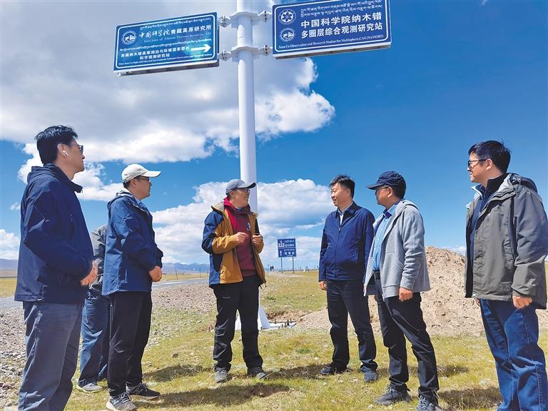 圖為科技部科學(xué)普及司工作人員和援藏專家一行,在當(dāng)雄縣調(diào)研中國科學(xué)院納木錯多圈層綜合觀測研究站、國家電網(wǎng)公司西藏羊八井高海拔試驗基地。記者 李洲 攝