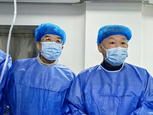 義診現(xiàn)場?。⊥鮽ッ窠淌谂c張大東教授為確診患者實施介入手術