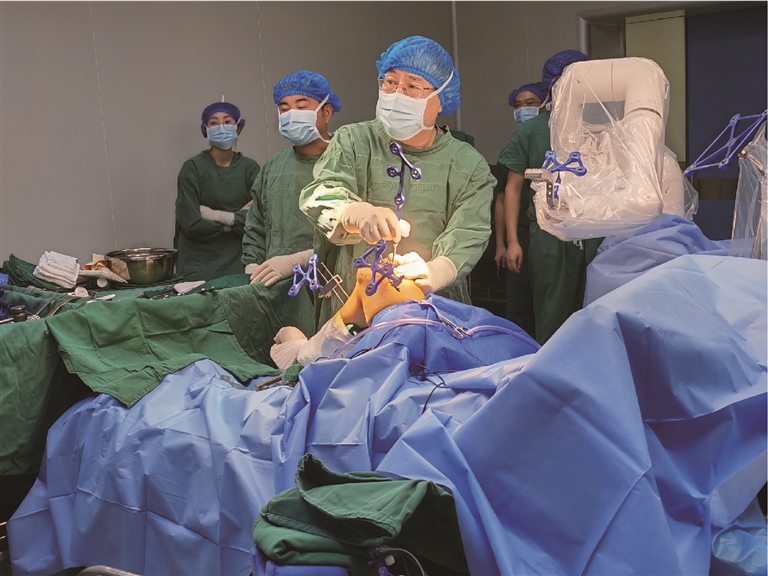 重慶援藏醫(yī)療專家開展西藏首例5G遠(yuǎn)程國(guó)產(chǎn)機(jī)器人全膝關(guān)節(jié)置換手術(shù)。