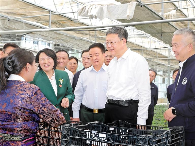 來(lái)到薩迦縣國(guó)家現(xiàn)代農(nóng)業(yè)產(chǎn)業(yè)園,溫室大棚內(nèi)作物長(zhǎng)勢(shì)良好,一派生機(jī)盎然。近年來(lái),在自治區(qū)黨委的大力推動(dòng)下,上海市援藏力量主動(dòng)作為,助力當(dāng)?shù)卮罅Πl(fā)展高原特色農(nóng)業(yè),不斷拓寬群眾增收渠道。代表團(tuán)走進(jìn)產(chǎn)業(yè)園,聽(tīng)取高原藜麥種源科技和產(chǎn)業(yè)發(fā)展、藏紅花種植技術(shù)創(chuàng)新和產(chǎn)業(yè)幫扶情況介紹,察看相關(guān)產(chǎn)品展示,與園區(qū)、企業(yè)負(fù)責(zé)人和科研團(tuán)隊(duì)深入交流,就進(jìn)一步推進(jìn)高寒地區(qū)現(xiàn)代農(nóng)業(yè)全產(chǎn)業(yè)鏈高質(zhì)量發(fā)展進(jìn)行討論。兩地同志表示,要立足雙方優(yōu)勢(shì),把上海資金、管理、科技、人才等優(yōu)勢(shì)與西藏資源、區(qū)位等優(yōu)勢(shì)相結(jié)合,進(jìn)一步做強(qiáng)特色產(chǎn)業(yè)、打響高原品牌,在以銷(xiāo)定產(chǎn)、產(chǎn)品推廣等方面開(kāi)展深度合作,促進(jìn)西藏優(yōu)質(zhì)資源變成好產(chǎn)品、走向大市場(chǎng)、賣(mài)出好價(jià)錢(qián),有效帶動(dòng)群眾就業(yè)增收,讓各族群眾錢(qián)包鼓起來(lái)、日子好起來(lái)。