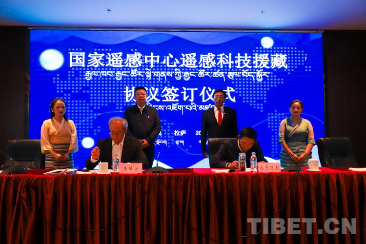 會(huì)上,科技部國家遙感中心與西藏自治區(qū)科學(xué)技術(shù)廳簽署了《關(guān)于遙感科技援藏的戰(zhàn)略合作協(xié)議》,并進(jìn)行了國家遙感中心西藏分部授牌儀式。