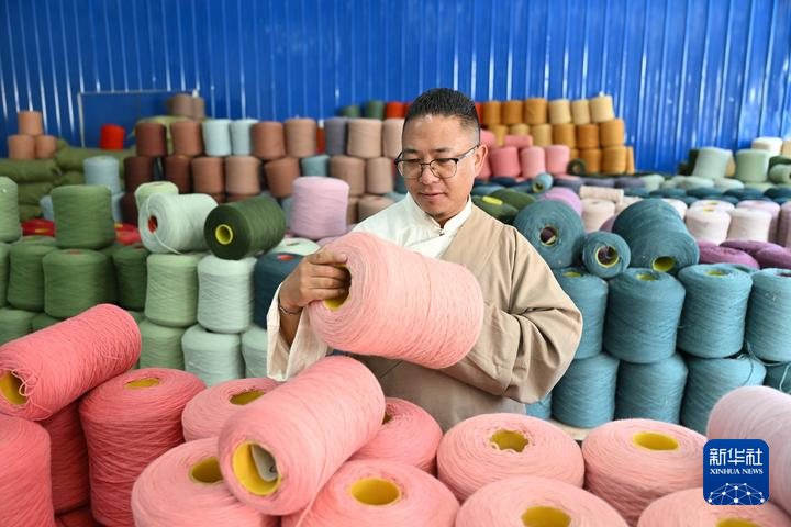 旦增稱來正在檢查染色后的紗線。新華社記者 李鑫 攝