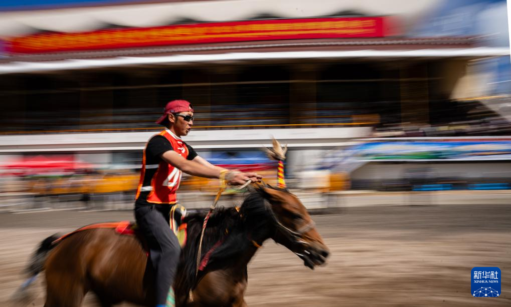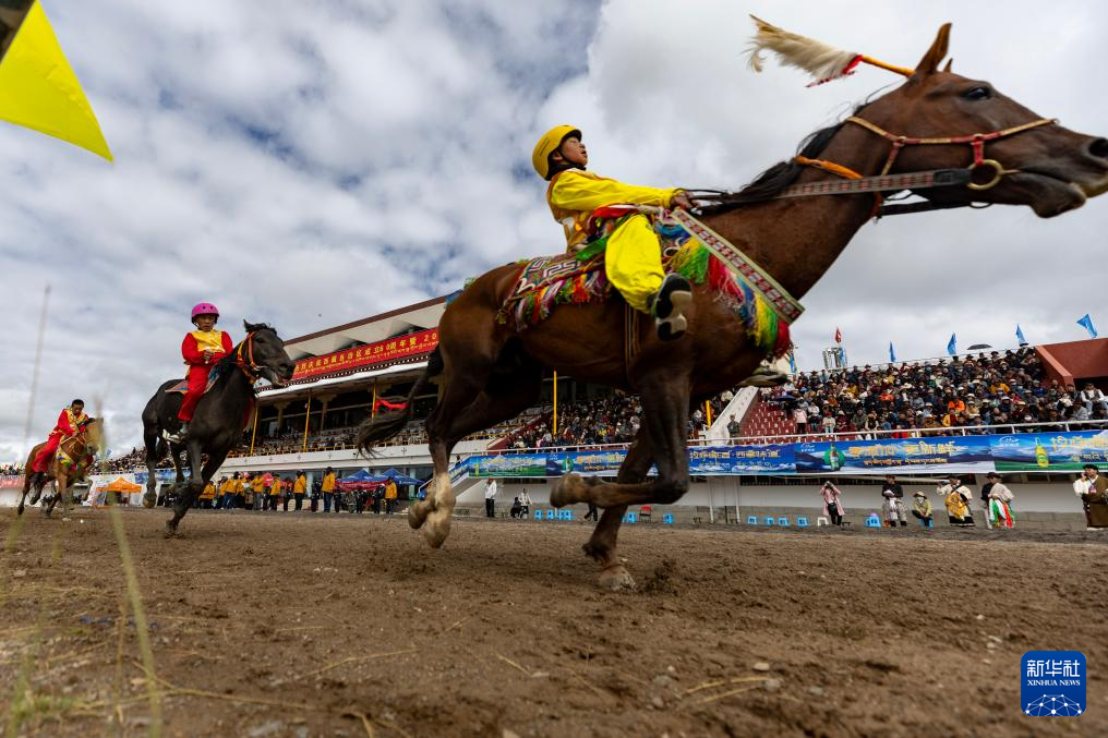 9月7日,騎手們?cè)趥鹘y(tǒng)大跑項(xiàng)目中馳騁。新華社記者 丁增尼達(dá) 攝