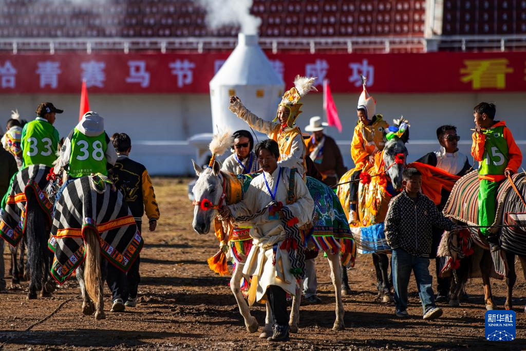 9月6日,在恰青賽馬節(jié)比賽現(xiàn)場,騎手們?cè)诘群虮荣愰_始。新華社記者 丁增尼達(dá) 攝