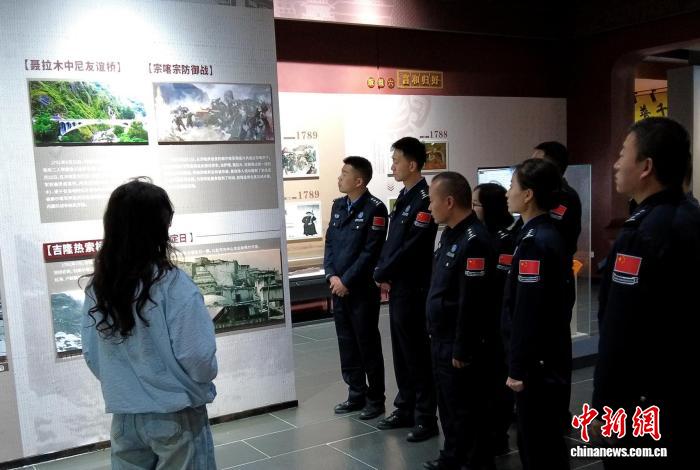 圖為吉隆出入境邊防檢查站組織民警在吉隆鎮(zhèn)參觀清軍護(hù)藏衛(wèi)國(guó)紀(jì)念館。肖富貴 攝