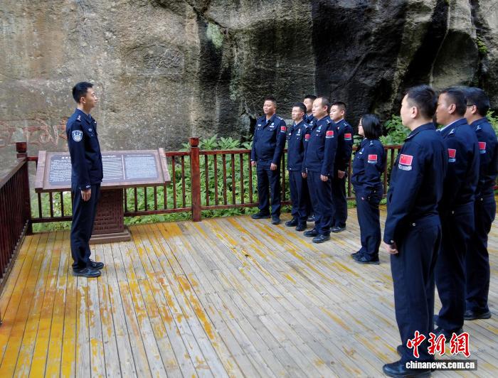 圖為吉隆出入境邊防檢查站組織民警參觀“招提壁壘”石刻遺跡。肖富貴 攝