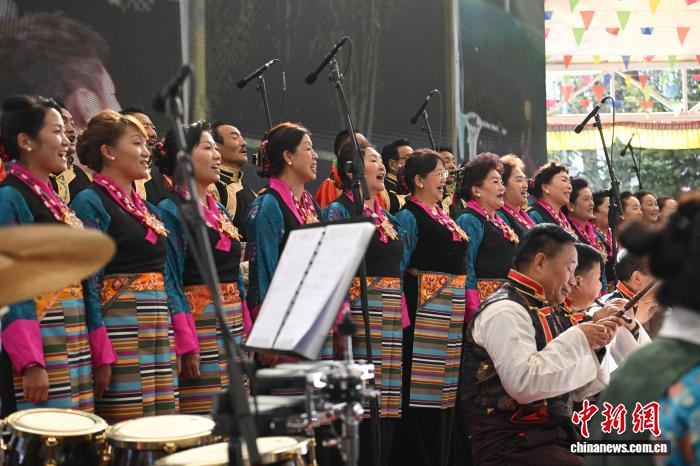 圖為群眾音樂會,民樂合奏《我的家鄉(xiāng)好》精彩上演。中新社記者 貢嘎來松 攝