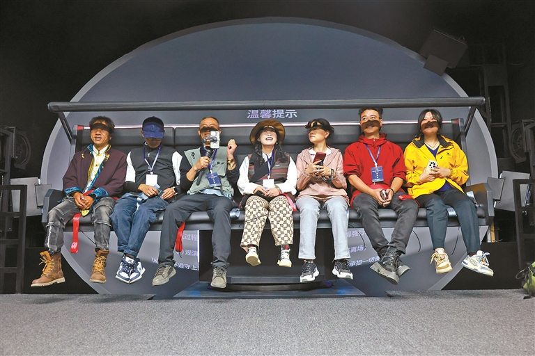 圖為游客在8D飛行影院體驗并了解瓊結(jié)縣的歷史人文。