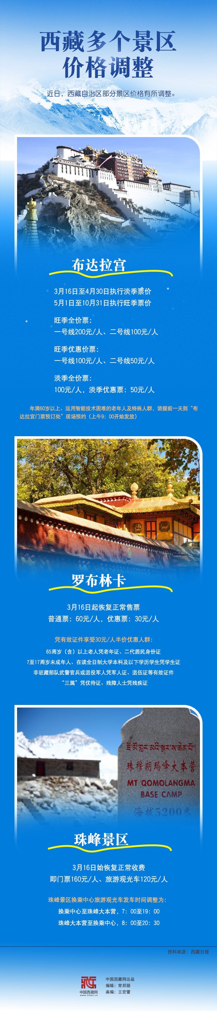 西藏多個(gè)景區(qū)價(jià)格調(diào)整
