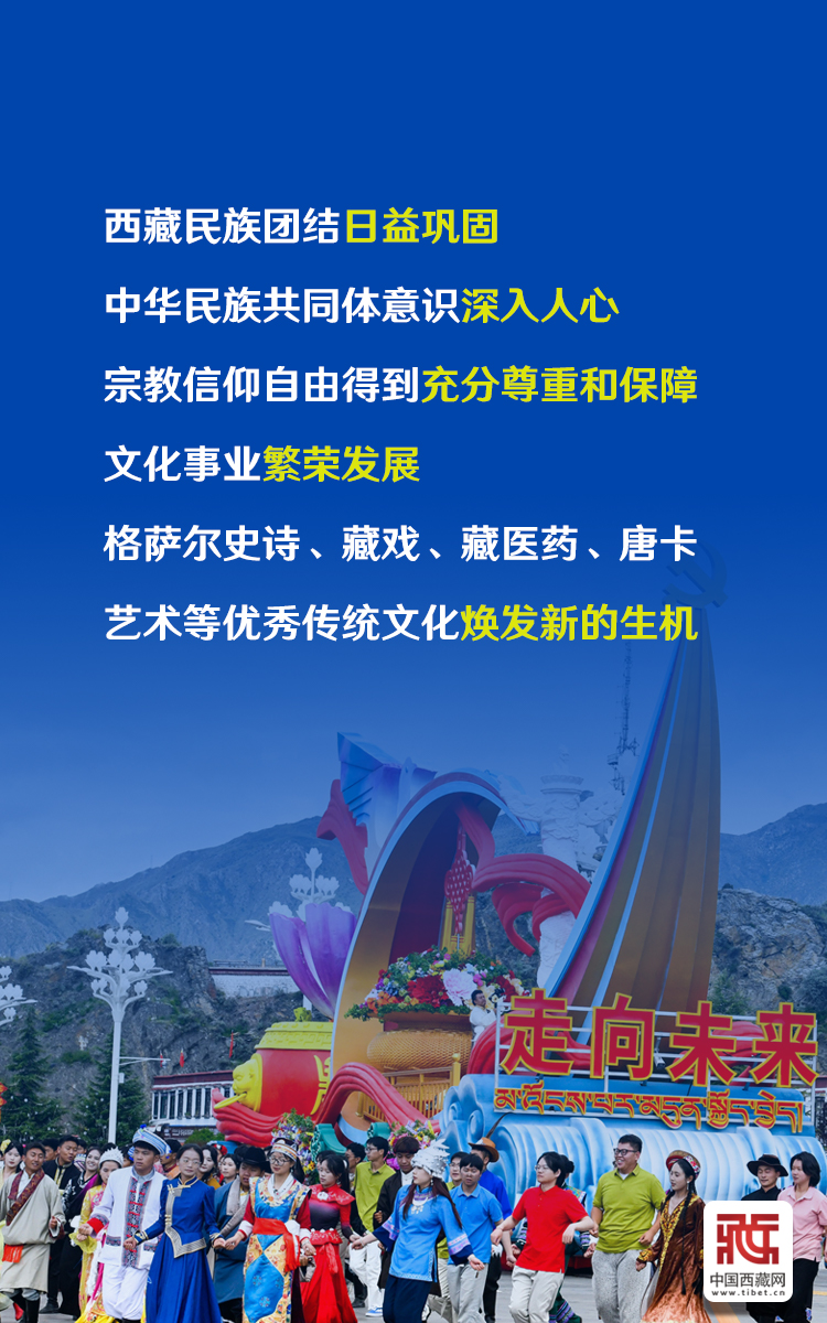 60年來,西藏經(jīng)濟(jì)社會全面發(fā)展,各族人民生活蒸蒸日上,生態(tài)文明建設(shè)成效顯著,民族團(tuán)結(jié)日益鞏固,中華民族共同體意識深入人心,宗教信仰自由得到充分尊重和保障,文化事業(yè)繁榮發(fā)展。(中國西藏網(wǎng) 記者/王淑 馮重霖 邊子捷 趙振宇 德吉卓瑪 次旦拉姆 旦曲 賈華加 趙釗 姚浩然 劉莉 楊眉笑 海報(bào)制作/趙佳)