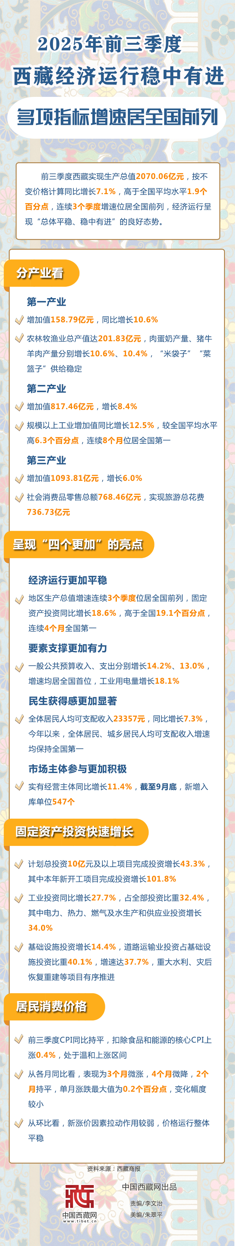 圖解|2025年前三季度西藏經(jīng)濟運行穩(wěn)中有進 多項指標增速居全國前列