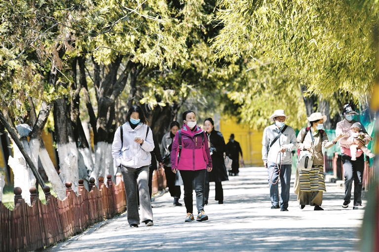 眾多游客、市民打卡春天的羅布林卡。