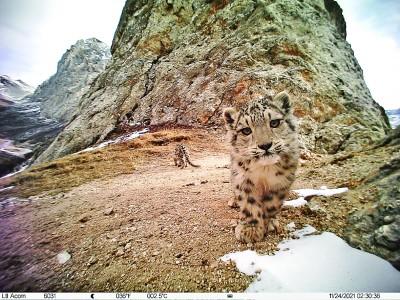 在世界屋脊研究野生動物,免不了直面挑戰(zhàn)。雪豹喜歡陡峭的石壁和山崖,因此安放紅外相機(jī)必須克服恐高心理。2021年10月,在云塔村爬山布設(shè)紅外相機(jī)時,我為了緊跟隊伍,沒來得及觀察周圍環(huán)境。當(dāng)穿過灌木到達(dá)監(jiān)測位點時,才發(fā)現(xiàn)自己站在山脊線上,背后就是幾十米高的斷崖,立馬嚇得眩暈蹲下。檢查并重新安裝好紅外相機(jī)后,我們又爬完兩座山才完成了一天的工作。這一趟,我們創(chuàng)造了為追逐雪豹一天內(nèi)翻越3座山的紀(jì)錄。