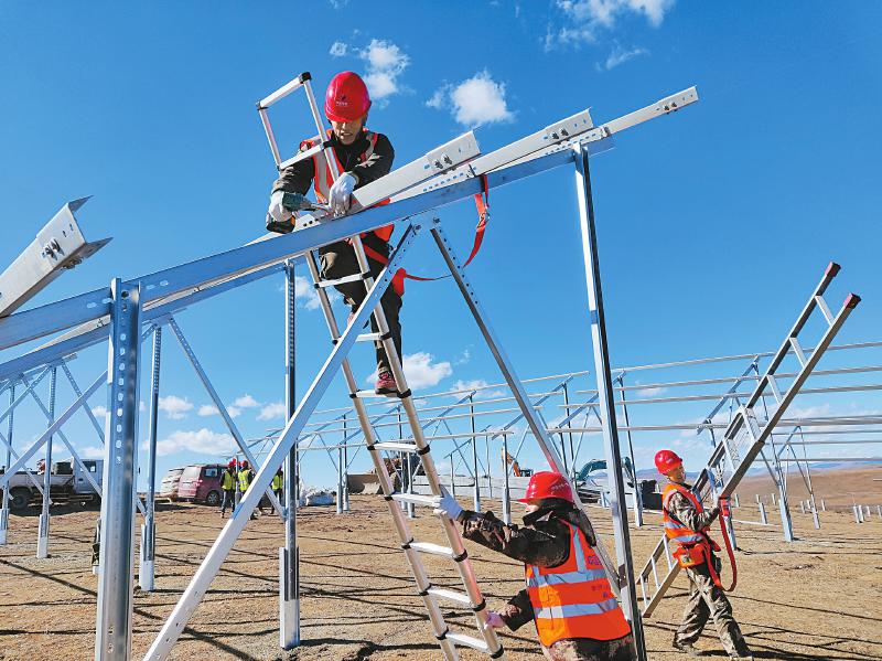 “這些光伏支架的基礎樁看著不起眼,卻是光伏板的‘脊梁’,每根承重超過25公斤?!毖诺a江流域水電開發(fā)有限公司柯拉光伏項目部經(jīng)理楊志偉介紹,目前已累計完成打樁近20萬根。