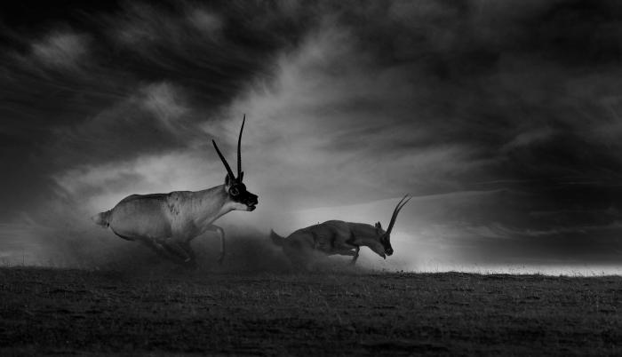 圖為焦生福作品《角逐》?!∏嗪J∑钸B山自然保護協(xié)會供圖