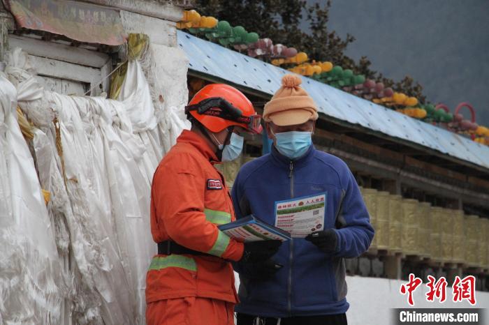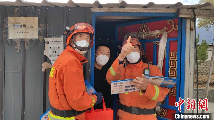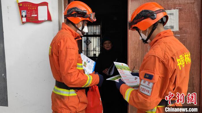 圖為森林消防員走村入戶防火宣傳。 林芝市森林消防供圖