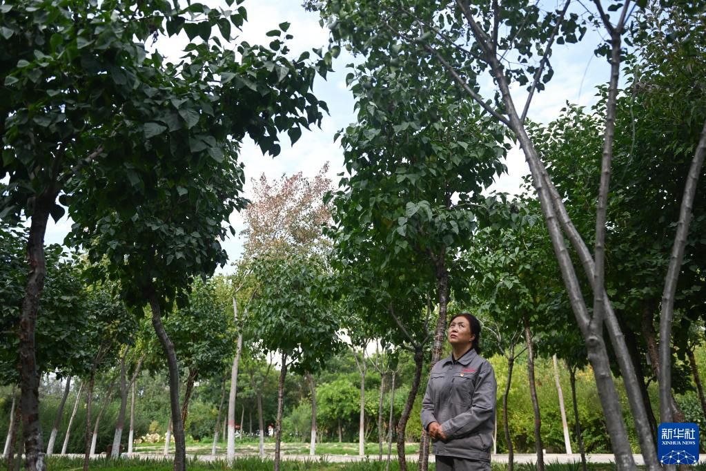 張錦梅在青海省西寧市林業(yè)科學研究所內查看林木生長情況(2022年9月14日攝)。新華社記者 張龍 攝