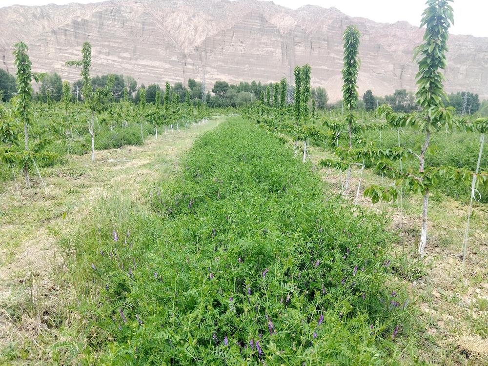 “果園處于黃河河谷沖積帶,產(chǎn)區(qū)光照時(shí)間長,晝夜溫差大,雨熱同期。但土壤是黏土,透氣性差一些,改變這個(gè)情況,就要靠種植綠肥,使用有機(jī)肥之類的?!惫麍@負(fù)責(zé)人滕樂知告訴記者。這幾年,他們和國家綠肥產(chǎn)業(yè)技術(shù)體系西寧綜合試驗(yàn)站合作后,每年都會(huì)在果樹間作綠肥箭筈豌豆、二月蘭,收割翻壓增強(qiáng)土壤肥力,以此一點(diǎn)點(diǎn)改善土壤,土壤好了,果樹就好,果樹長好了自然就有好果子。