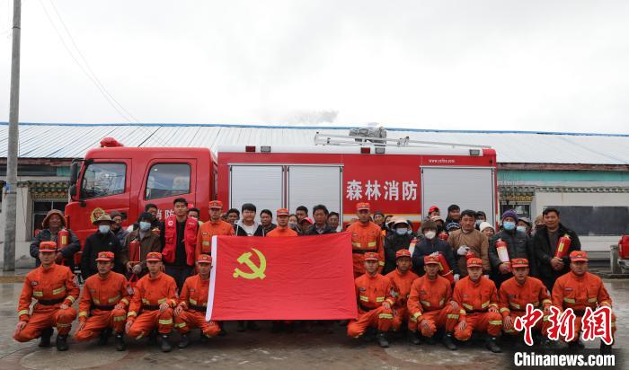 林芝市森林消防支隊(duì)巴宜區(qū)中隊(duì)消防救援人員與地方民眾合影留念?!∥骼@拉翁 攝