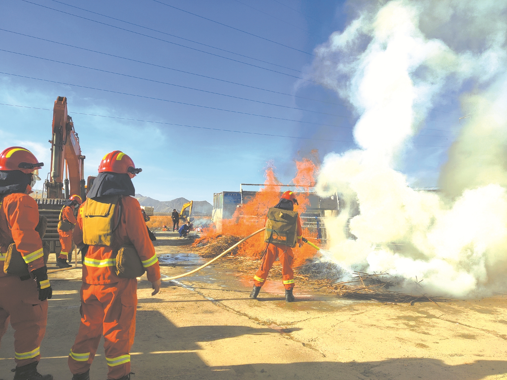 圖為消防演練現場。拉薩融媒記者 余洋洋攝