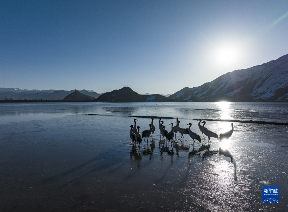 近日,西藏拉薩市各區(qū)縣迎來(lái)降雪。群山被白雪覆蓋,高原壯麗唯美。黑頸鶴、斑頭雁等翩躚起舞,拉薩河谷生機(jī)盎然。