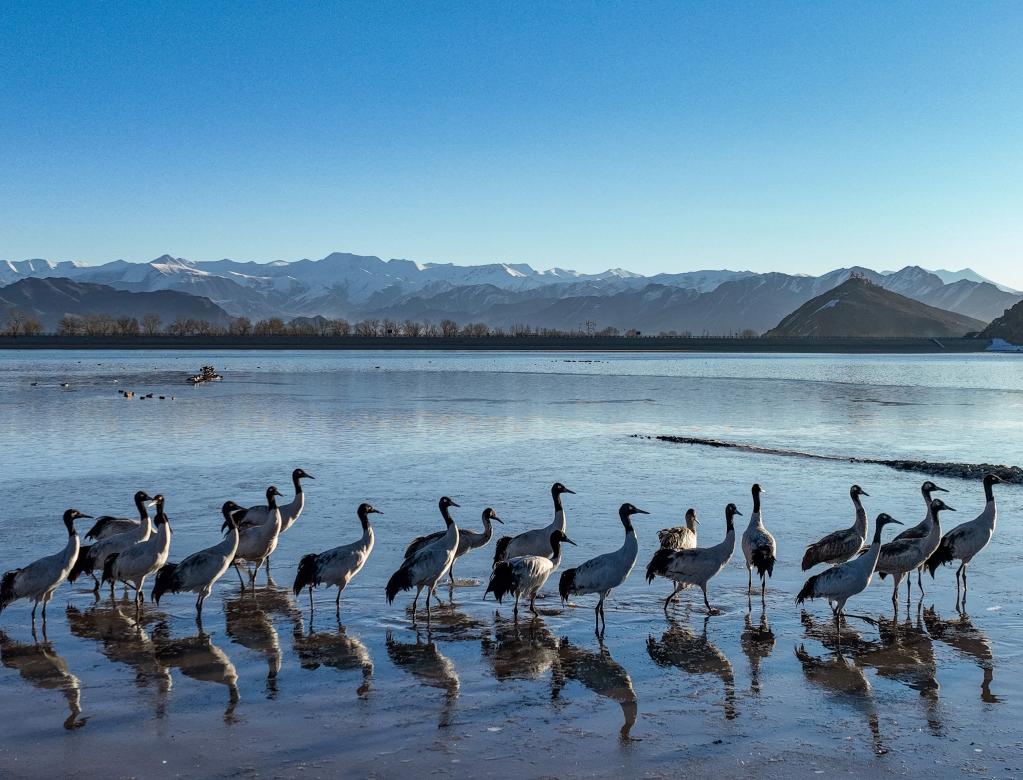 近日,西藏拉薩市各區(qū)縣迎來降雪。群山被白雪覆蓋,高原壯麗唯美。黑頸鶴、斑頭雁等翩躚起舞,拉薩河谷生機盎然。 [詳細] -