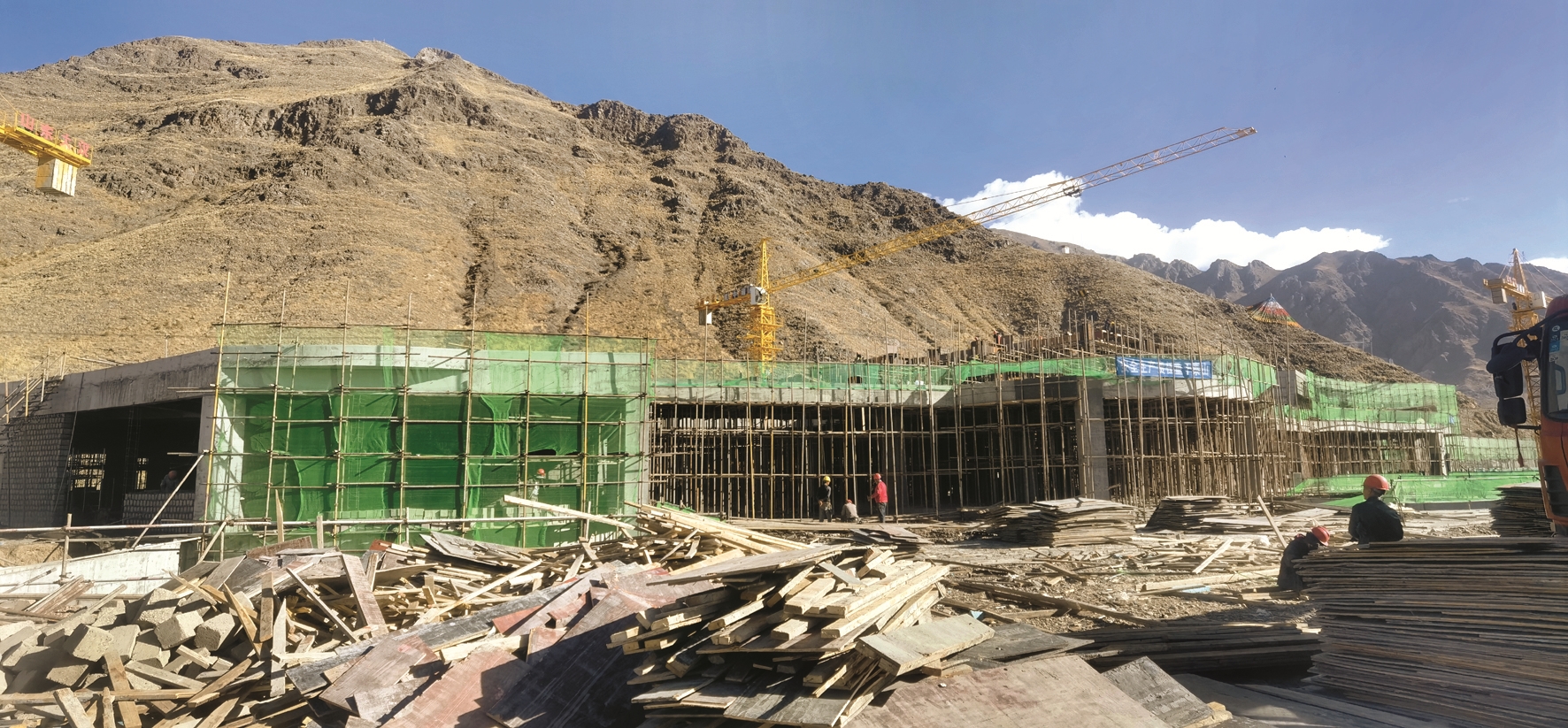 堆龍德慶區(qū)民族團(tuán)結(jié)主題公園位于堆龍德慶區(qū)人和立交以北,相鄰堆龍德慶區(qū)濱河體育公園,項(xiàng)目總投資1.7億元,用地面積101畝,分兩期建設(shè);項(xiàng)目于今年2月27日正式復(fù)工,目前已完成總工程量的60%。記者在施工現(xiàn)場看到,3座塔吊來回調(diào)運(yùn)材料、工人們分工配合、運(yùn)輸車來來回回,一派熱火朝天的建設(shè)景象。