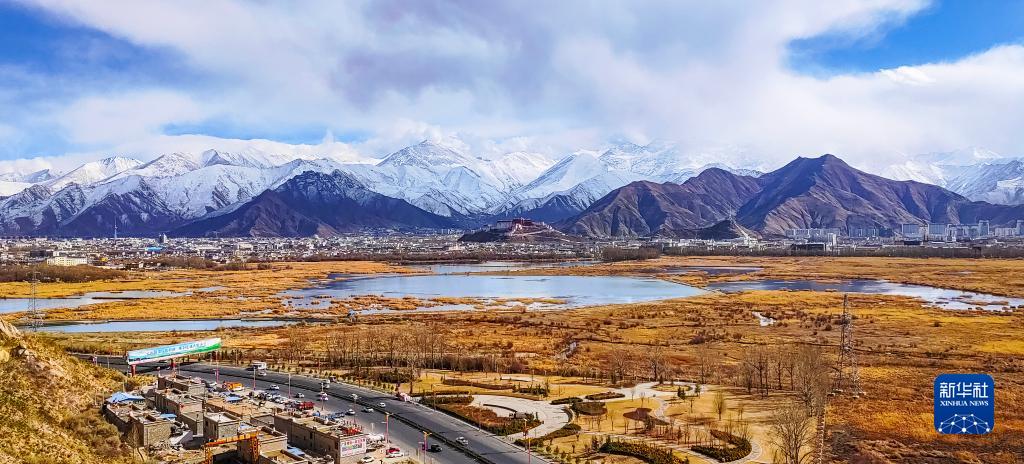 越過(guò)拉魯濕地眺望布達(dá)拉宮(2023年2月24日攝)。新華社記者沈虹冰 攝