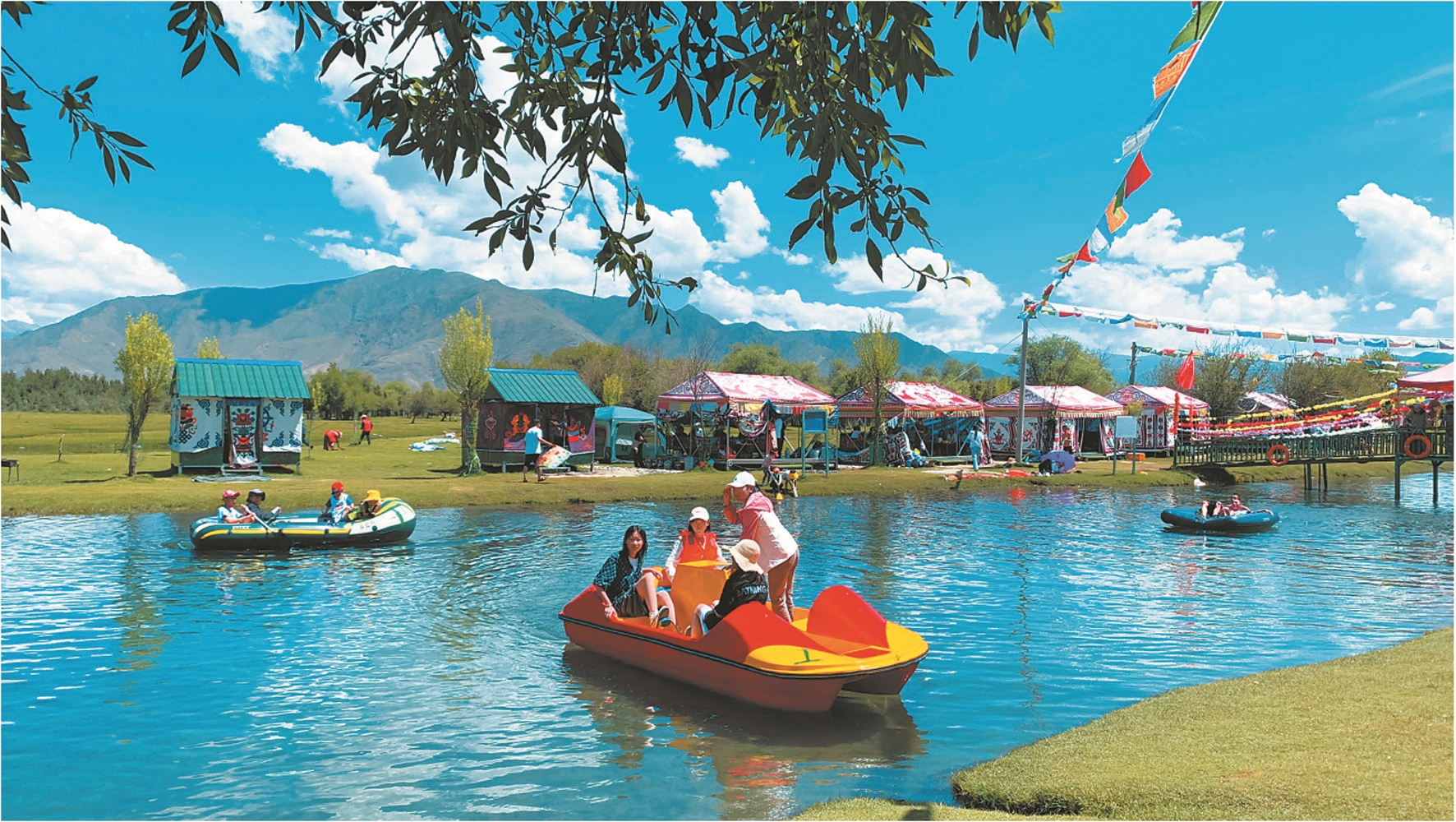 時(shí)下,正是“過林卡”的最好時(shí)節(jié),為了吸引客源、招攬生意,林卡經(jīng)營者不斷完善基礎(chǔ)設(shè)施,搭建漂亮的帳篷,提供特色服務(wù),滿足市民游客戲水、劃船、健身運(yùn)動(dòng)和特色美食等需求。