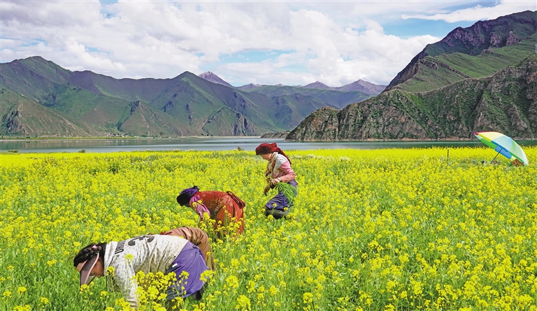 墨竹工卡距離拉薩市區(qū)68公里,是拉薩的“東大門”,平均海拔4200米,總面積5500平方公里,6.5萬人。近年來,墨竹工卡縣致力于墨竹小油菜“三產(chǎn)融合”發(fā)展,壯大一產(chǎn)、提升二產(chǎn)、延伸三產(chǎn)。2023年墨竹工卡縣共種植墨竹小油菜3.03萬畝,油菜籽產(chǎn)量預(yù)計達0.45萬噸,預(yù)計實現(xiàn)總產(chǎn)值3600萬余元。2022年縣菜籽油榨油廠通過與當?shù)厝罕姾炗喪召徍贤?,帶?600余戶農(nóng)戶增收400.6萬元。墨竹旅游業(yè)呈現(xiàn)快速發(fā)展的勢頭,接待服務(wù)能力明顯提高。今年上半年,全縣接待旅游者3.8萬人次、同比增長90%,旅游總收入331.45萬元,同比增長259.7%。文/圖 記者 張雪芳