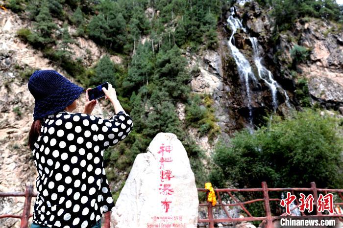 圖為游客在互助北山國家森林公園內(nèi)拍照留念。薛蒂 攝