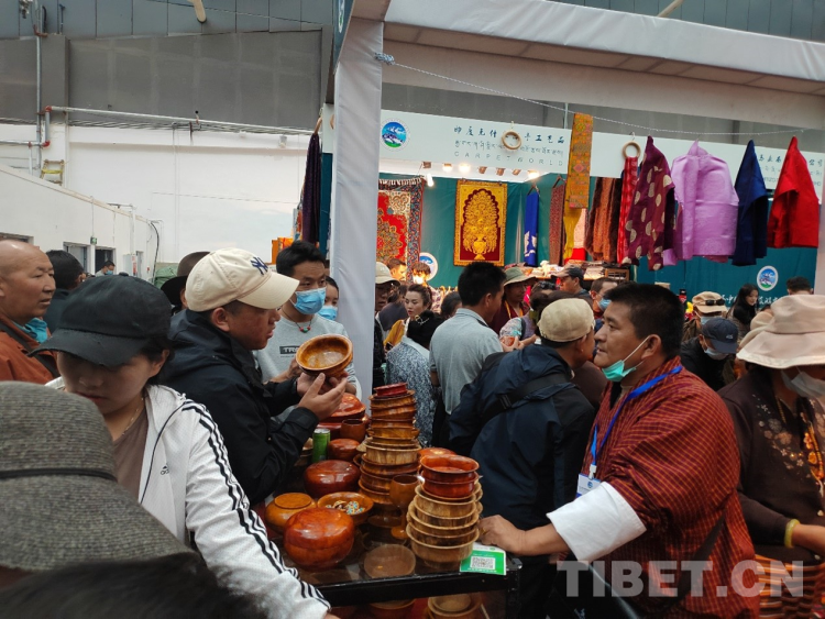 圖為第五屆中國西藏旅游文化國際博覽會展銷活動現(xiàn)場市民在選購商品 攝影:次旦拉姆
